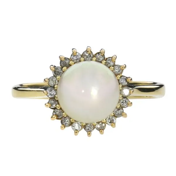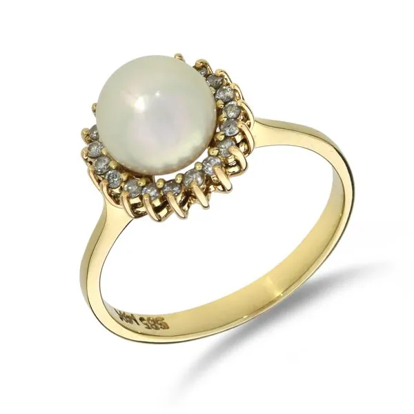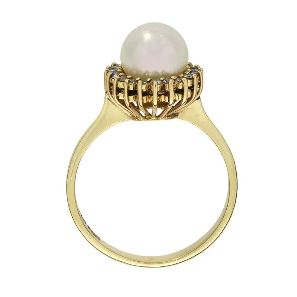 14K Yellow Gold 7.92mm Cultured Pearl and Diamond Halo Ring Image 3 Purple Creek Holly Springs, NC