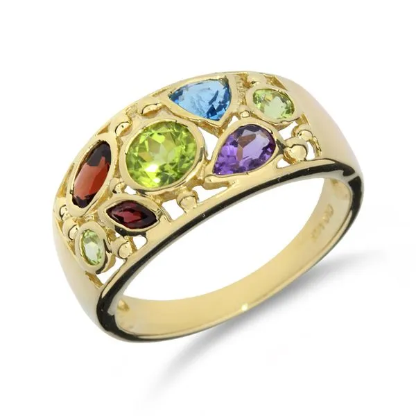 14K Yellow Gold Multi Gemstone Cluster Band Ring