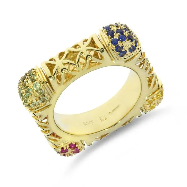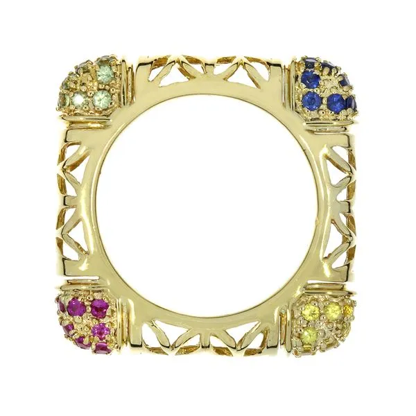 14K Yellow Gold Multicolor Sapphire Square Shank Ring