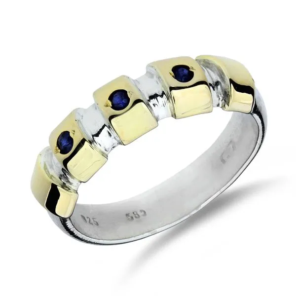 14K Yellow Gold & Sterling Silver Blue Sapphire Ribbed Bar Ring Purple Creek Holly Springs, NC
