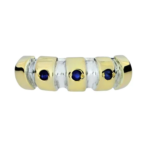 14K Yellow Gold & Sterling Silver Blue Sapphire Ribbed Bar Ring Image 2 Purple Creek Holly Springs, NC