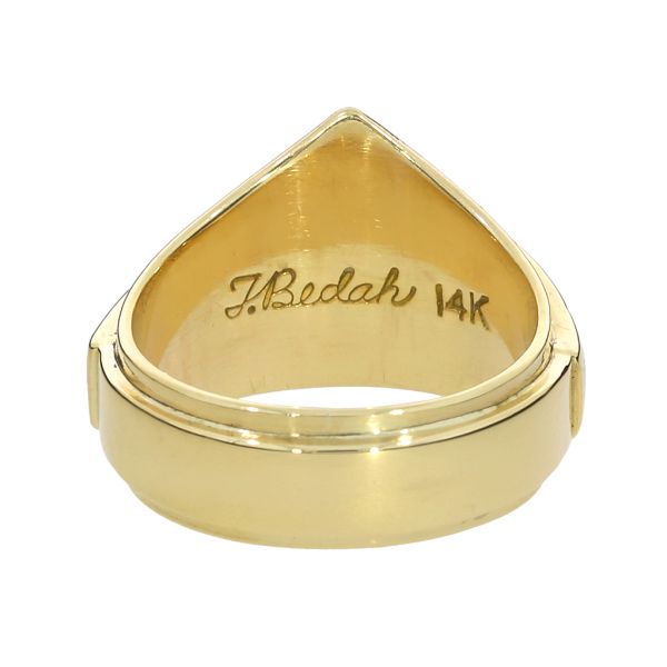 14K Yellow Gold Tim Bedah Signed Native American Turquoise, Coral and MOP Inlay Ring Image 5 Purple Creek Holly Springs, NC