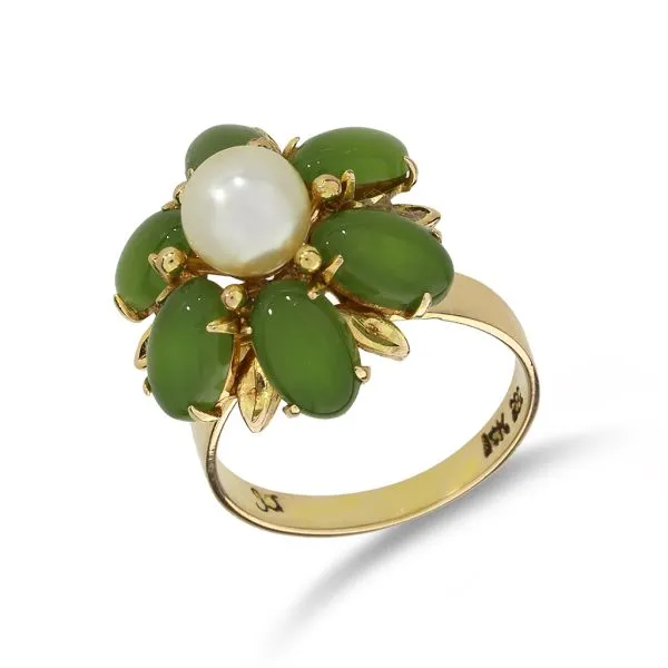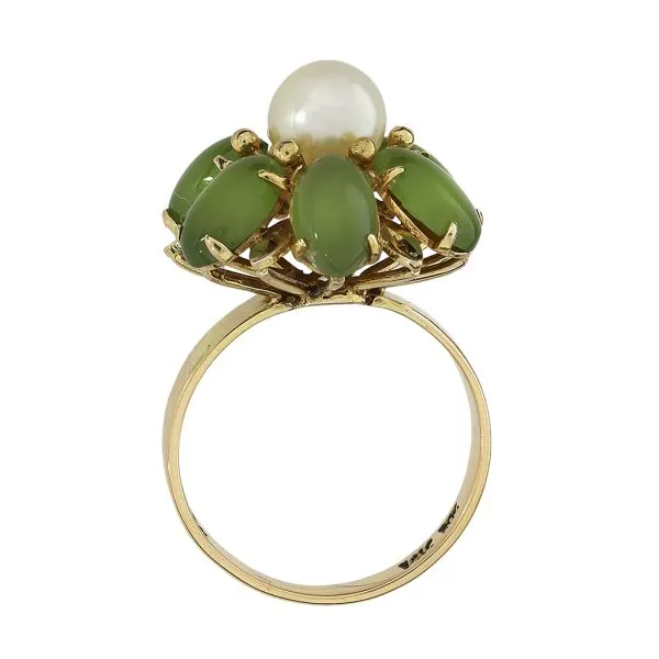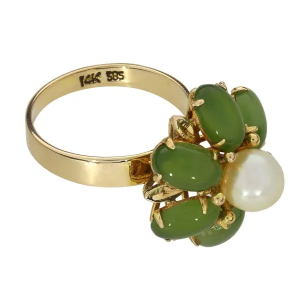 14K Yellow Gold Vintage Nephrite Jade and Pearl Cluster Dome Ring Image 2 Purple Creek Holly Springs, NC