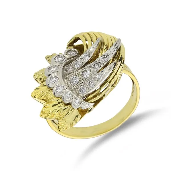 18K Gold Vintage Headdress Crown Swash .43ctw Natural Diamond Ring