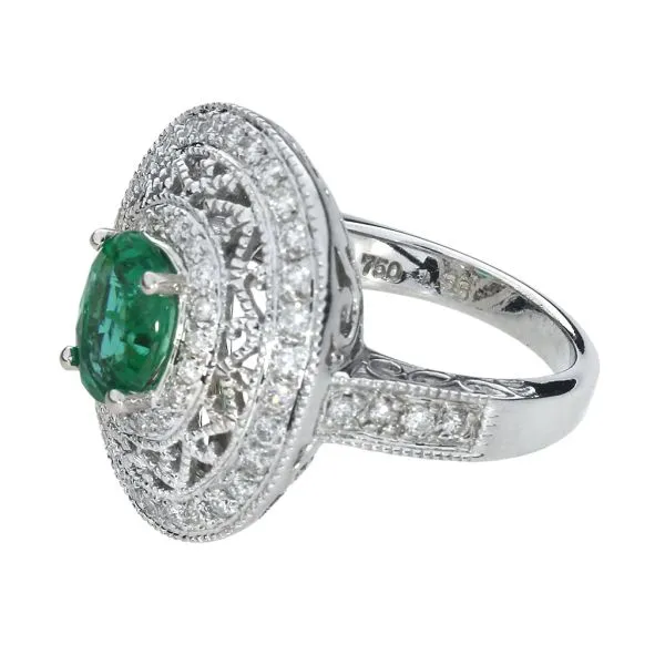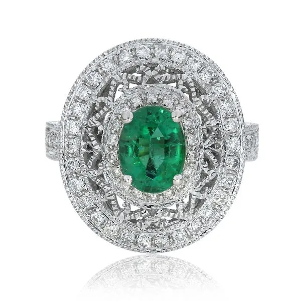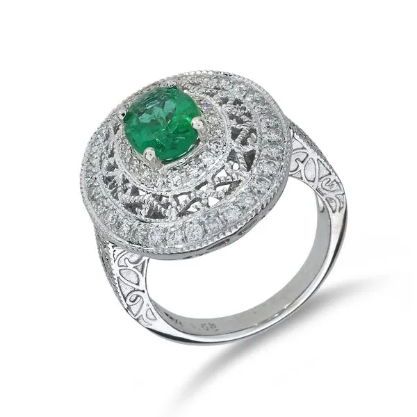 18K White Gold 1.55ct Emerald and .86ctw Diamond Dome Ring Purple Creek Holly Springs, NC