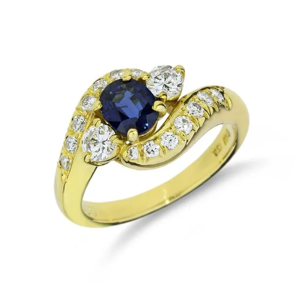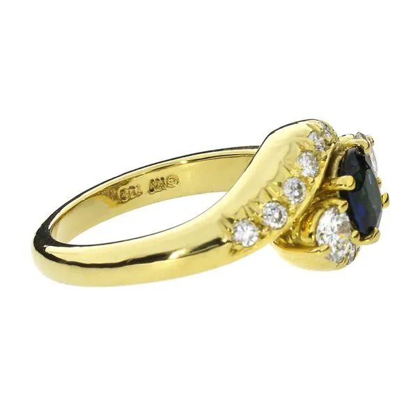 18K Yellow Gold .85ct Blue Sapphire & Natural Diamond Bypass Ring