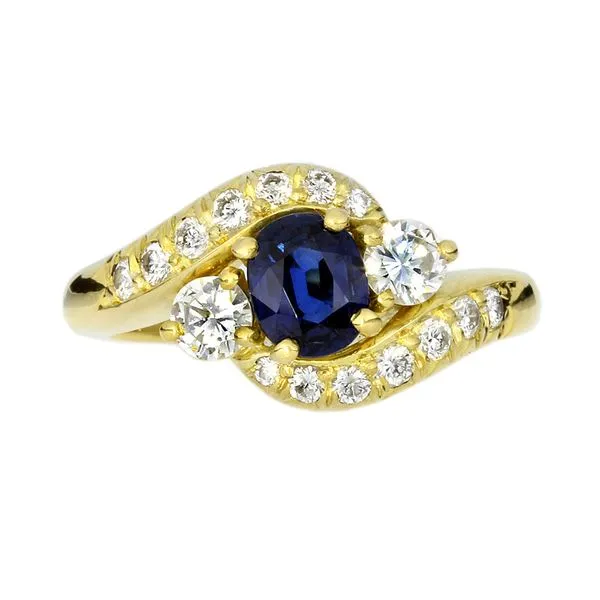 18K Yellow Gold .85ct Blue Sapphire & Natural Diamond Bypass Ring Purple Creek Holly Springs, NC