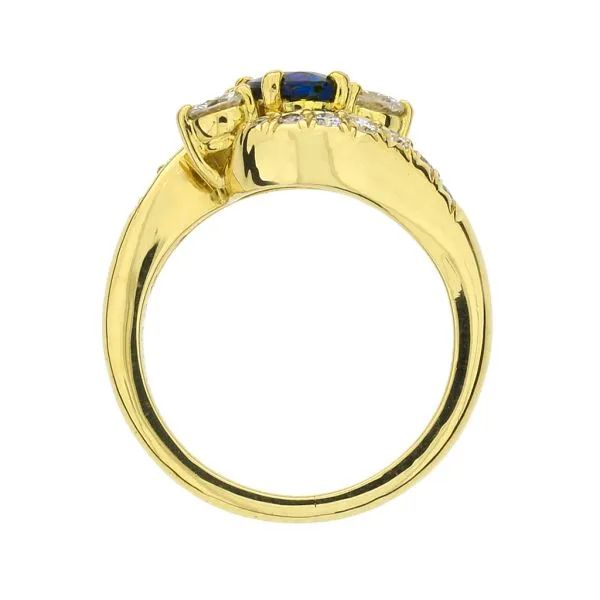 18K Yellow Gold .85ct Blue Sapphire & Natural Diamond Bypass Ring Image 2 Purple Creek Holly Springs, NC