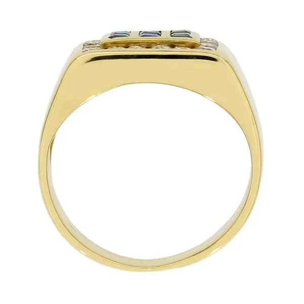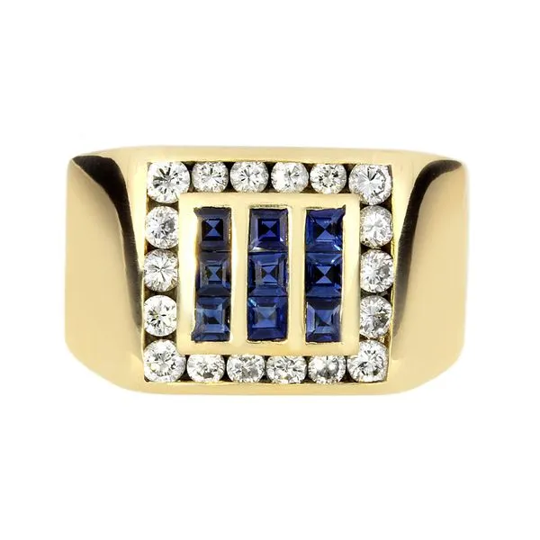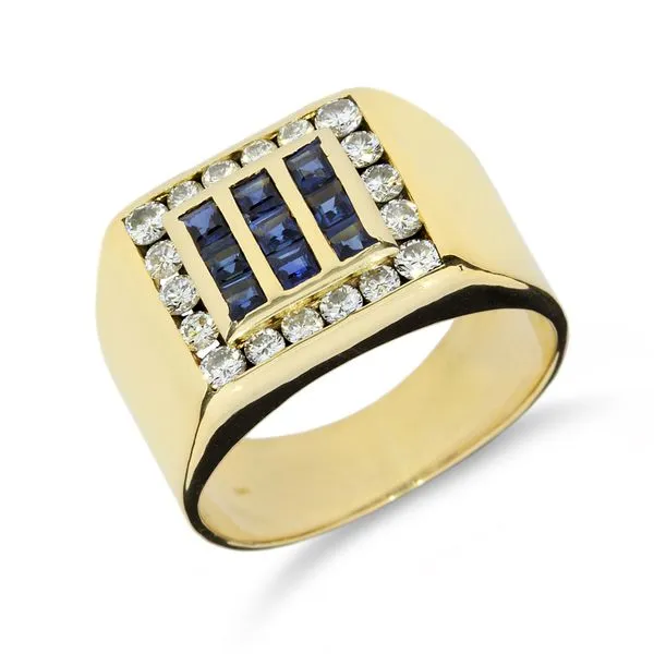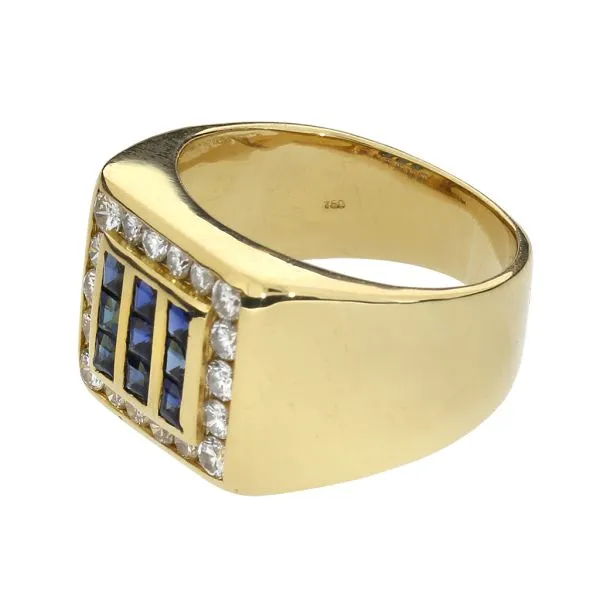 18K Yellow Gold Blue Sapphire & Natural Diamond Square Halo Ring Purple Creek Holly Springs, NC