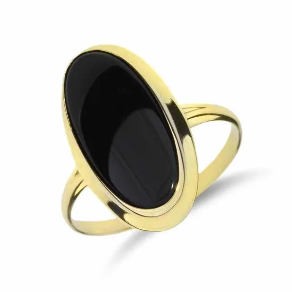 18K Yellow Gold Oval Black Onyx Ring