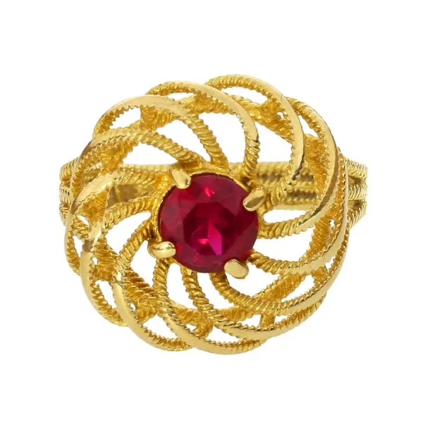 18K Yellow Gold Ruby Milgrain Swirl Vintage Ring