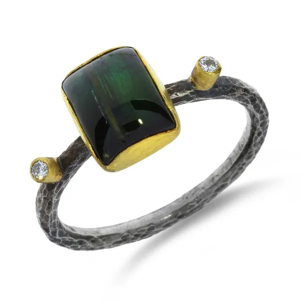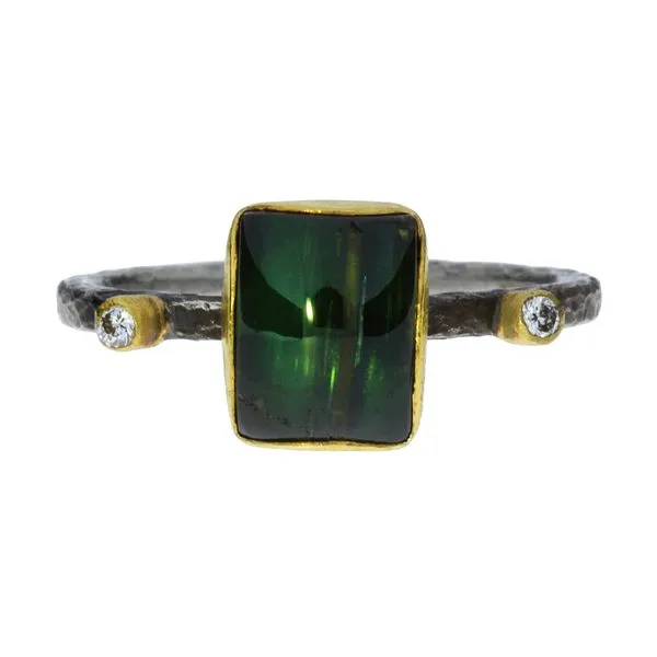 24K Yellow Gold & Sterling Cats Eye Tourmaline & Diamond Ring Image 2 Purple Creek Holly Springs, NC