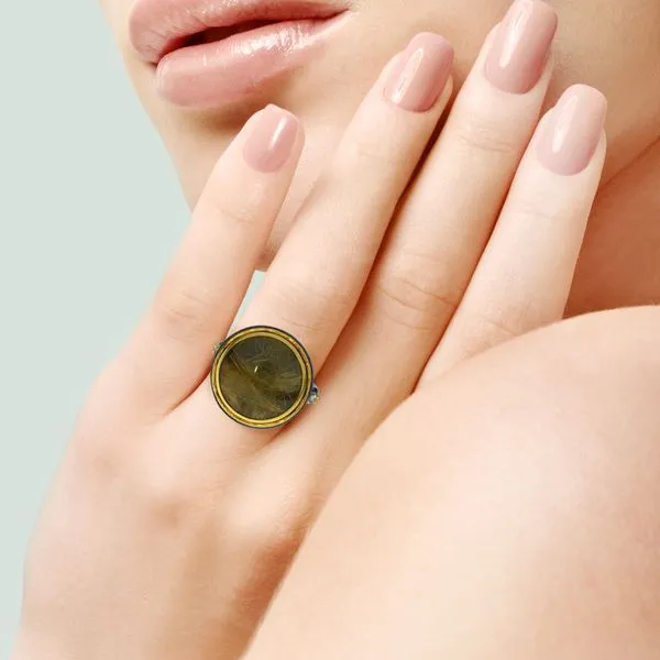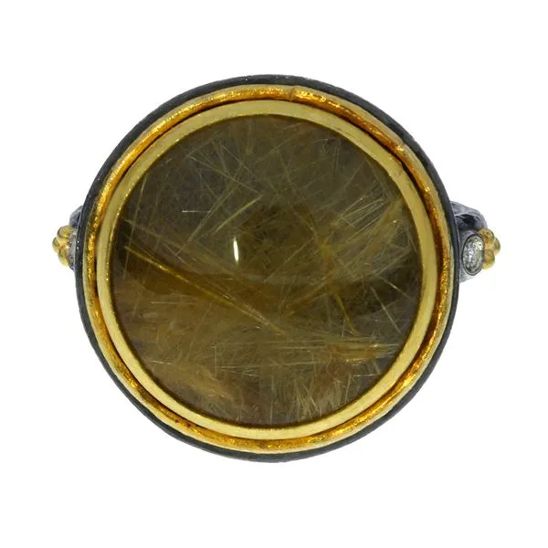 24K Yellow Gold & Sterling Rutilated Quartz & Diamond Ring