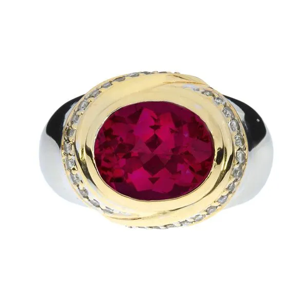 5.72ct Rubellite Tourmaline & Natural Diamond 14K White and Yellow Gold Ring Image 2 Purple Creek Holly Springs, NC
