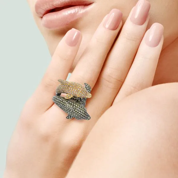 6.74ctw Natural Diamond Double Dolphin 18K Rose & Black Gold Bypass Ring