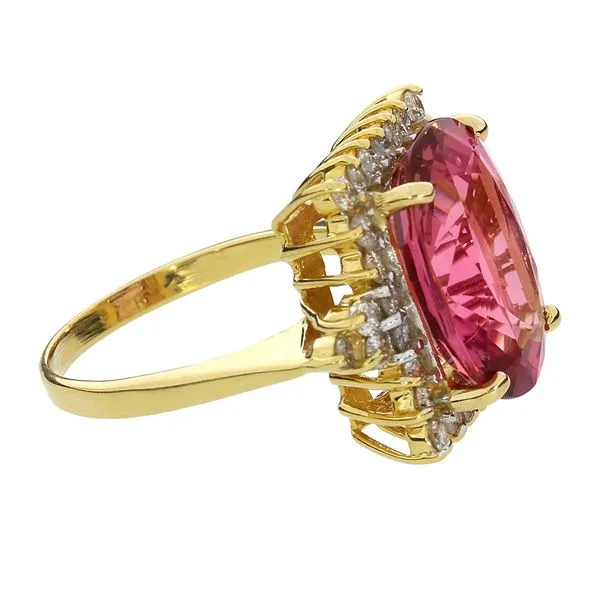 7.91ct Pink Tourmaline and Natural Diamond 14K Yellow Gold Ring