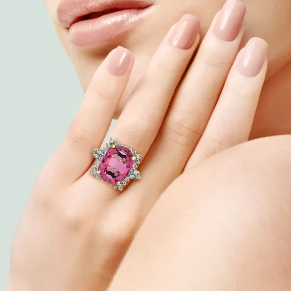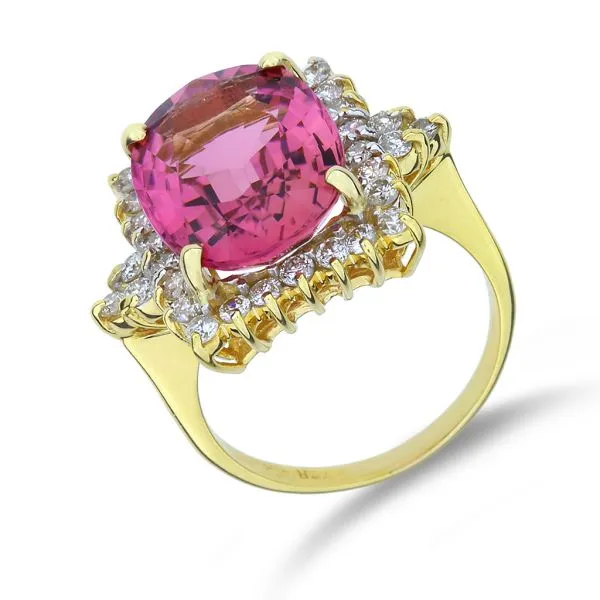7.91ct Pink Tourmaline and Natural Diamond 14K Yellow Gold Ring Image 2 Purple Creek Holly Springs, NC