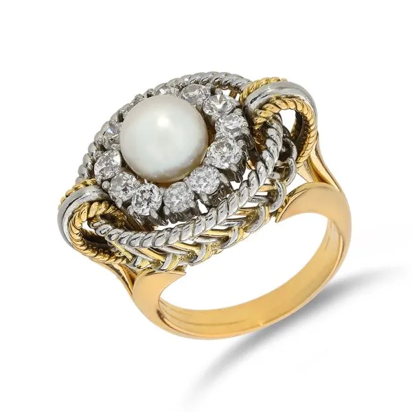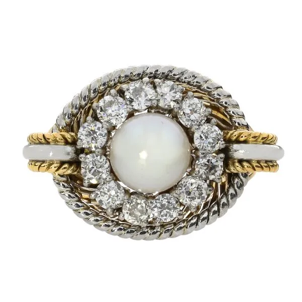 Antique 950 Platinum & 18K Gold with 1.20ctw Old European Natural Diamond Halo Pearl Ring Image 2 Purple Creek Holly Springs, NC