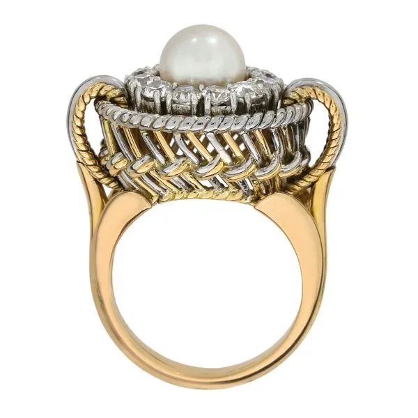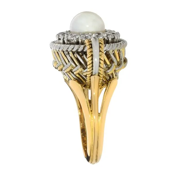 Antique 950 Platinum & 18K Gold with 1.20ctw Old European Natural Diamond Halo Pearl Ring Image 4 Purple Creek Holly Springs, NC