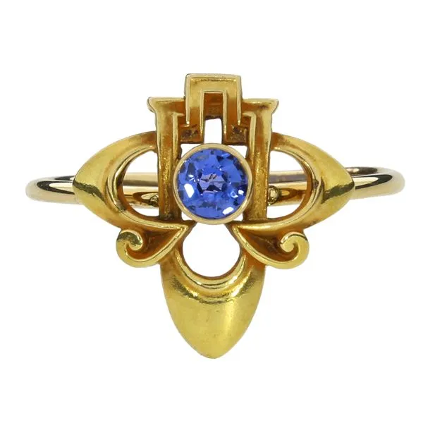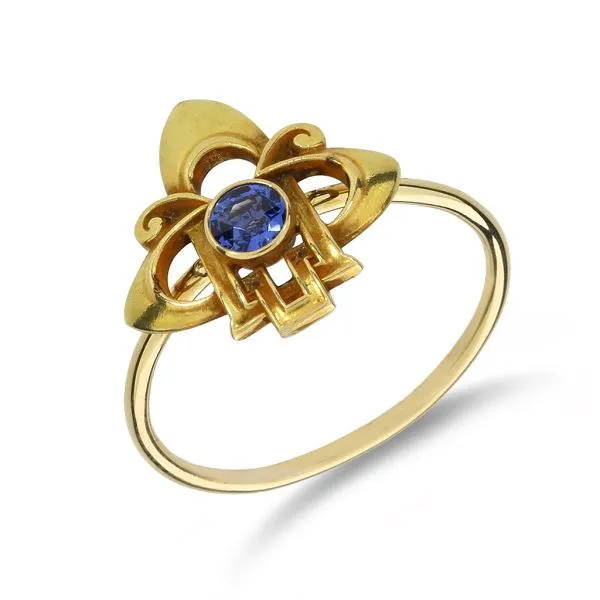 Antique Art Nouveau 14K Yellow Gold Blue Sapphire Stick Pin Conversion Ring Image 2 Purple Creek Holly Springs, NC