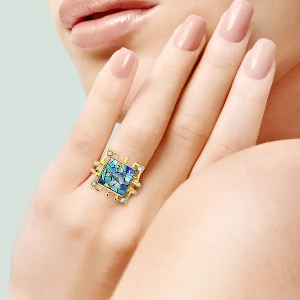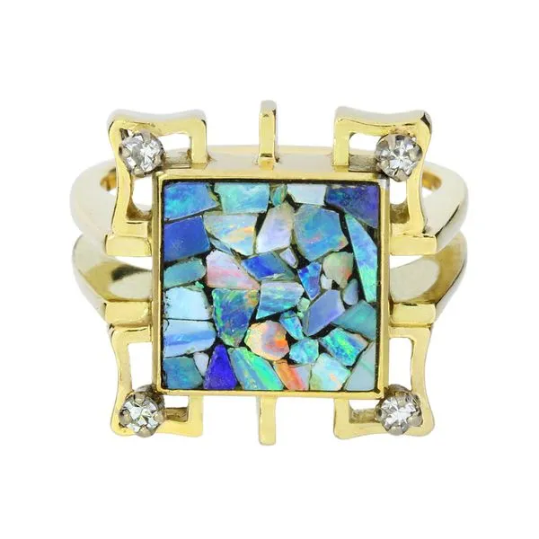 Art Deco 14K Yellow Gold Opal Mosaic & Natural Diamond Ring Image 2 Purple Creek Holly Springs, NC