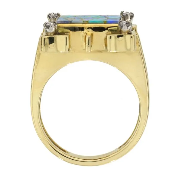 Art Deco 14K Yellow Gold Opal Mosaic & Natural Diamond Ring Image 5 Purple Creek Holly Springs, NC