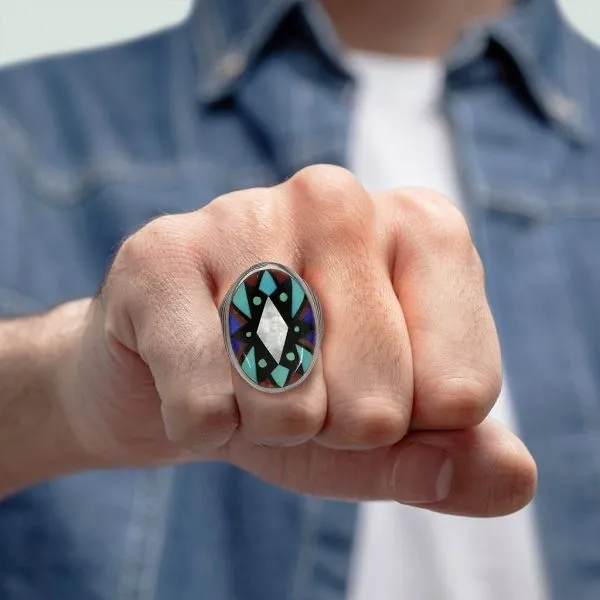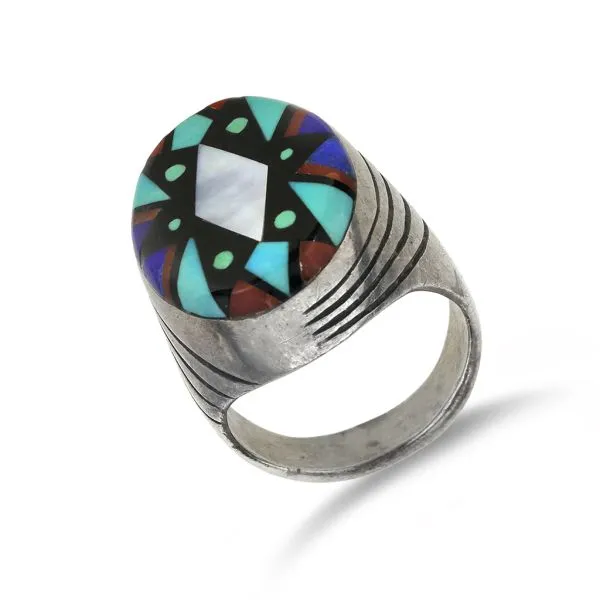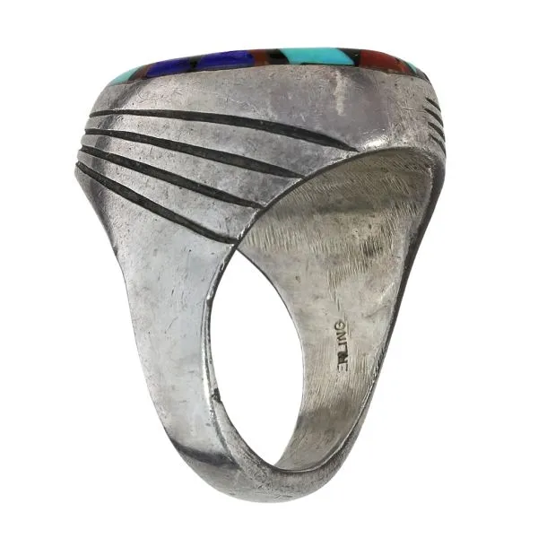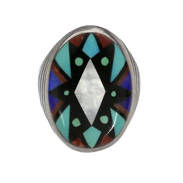 Elliot Qualo Zuni Vintage Native American Gemstone Inlay Dome Mens Ring