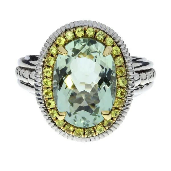 Gabriel & Co 18K Yellow Gold & Sterling 6.25ct Prasiolite & Yellow Sapphire Ring