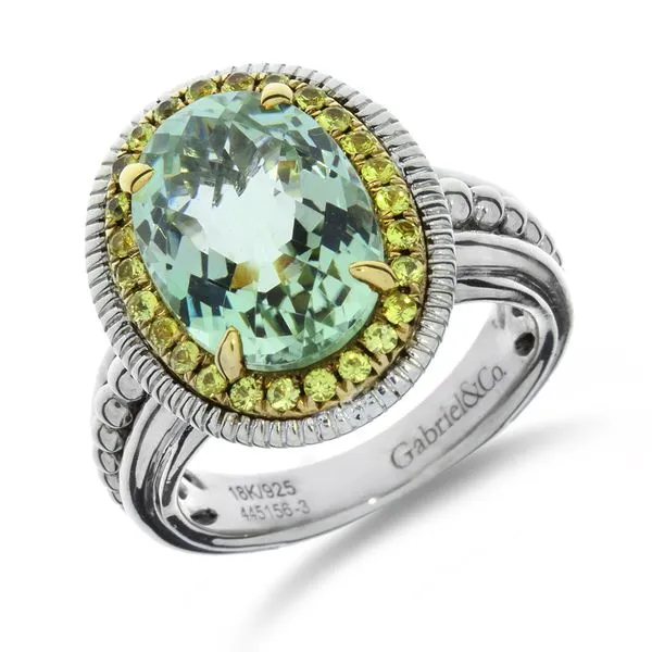 Gabriel & Co 18K Yellow Gold & Sterling 6.25ct Prasiolite & Yellow Sapphire Ring