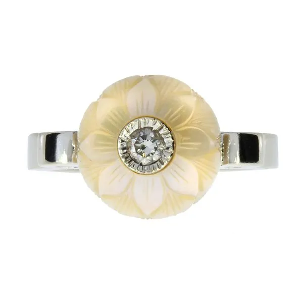 Galatia LuckDaisy Carved Pearl & Natural Diamond 14K White Gold Ring Purple Creek Holly Springs, NC