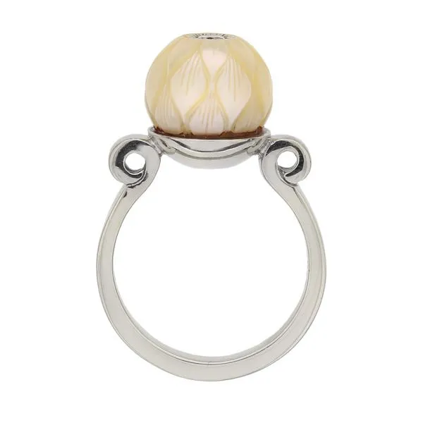 Galatia LuckDaisy Carved Pearl & Natural Diamond 14K White Gold Ring
