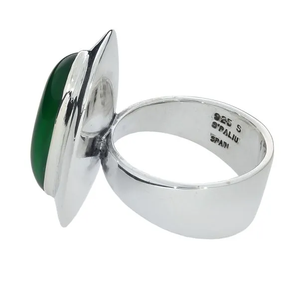 Joachim S'Paliu Modernist Oval Green Chalcedony Sterling Silver Ring