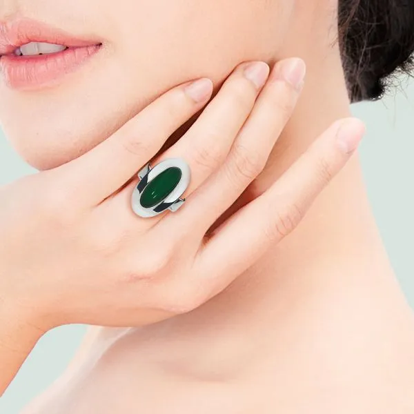 Joachim S'Paliu Modernist Oval Green Chalcedony Sterling Silver Ring Purple Creek Holly Springs, NC