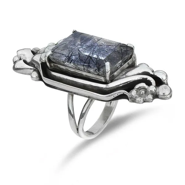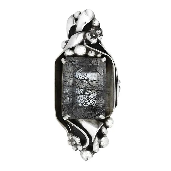 Les Baker Signed Sterling Silver 23.50ct Tourmalinated Quartz Floral Ring Image 4 Purple Creek Holly Springs, NC