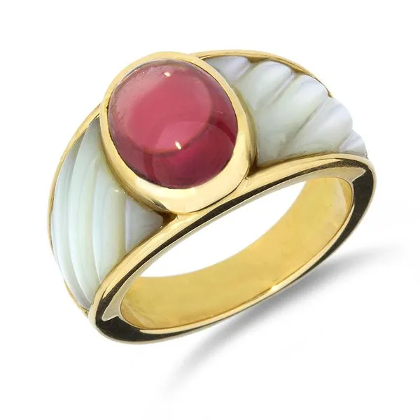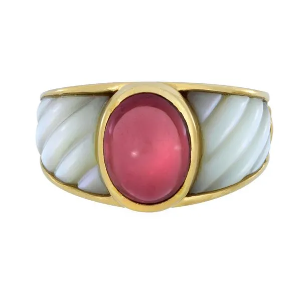 Mauboussin 18K Yellow Gold 3.35ct Pink Tourmaline & Carved Mother of Pearl Ring Image 2 Purple Creek Holly Springs, NC
