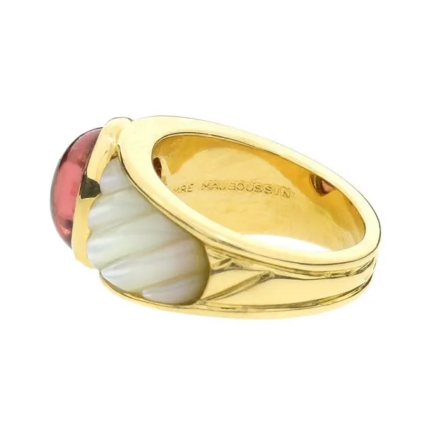 Mauboussin 18K Yellow Gold 3.35ct Pink Tourmaline & Carved Mother of Pearl Ring Image 4 Purple Creek Holly Springs, NC