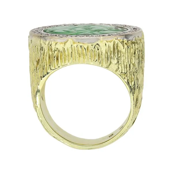 Mens 14K Yellow Gold Carved Jadeite .80ctw Natural Diamond Halo Ring Image 3 Purple Creek Holly Springs, NC