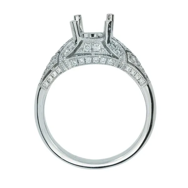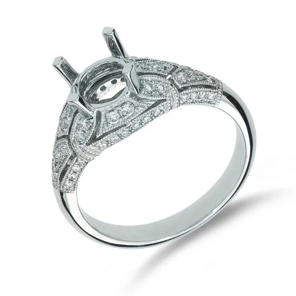 New 18K White Gold Hand Engraved Art Deco Natural Diamond Engagement Semi Mount Ring