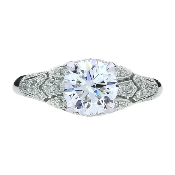 New 18K White Gold Hand Engraved Art Deco Natural Diamond Engagement Semi Mount Ring Image 3 Purple Creek Holly Springs, NC