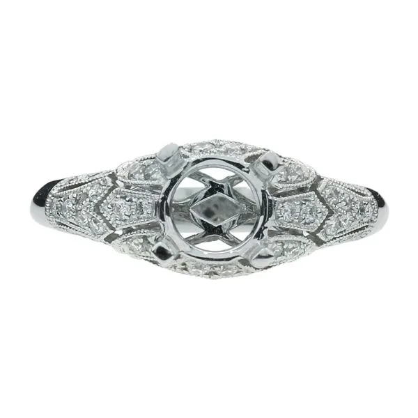 New 18K White Gold Hand Engraved Art Deco Natural Diamond Engagement Semi Mount Ring Image 5 Purple Creek Holly Springs, NC