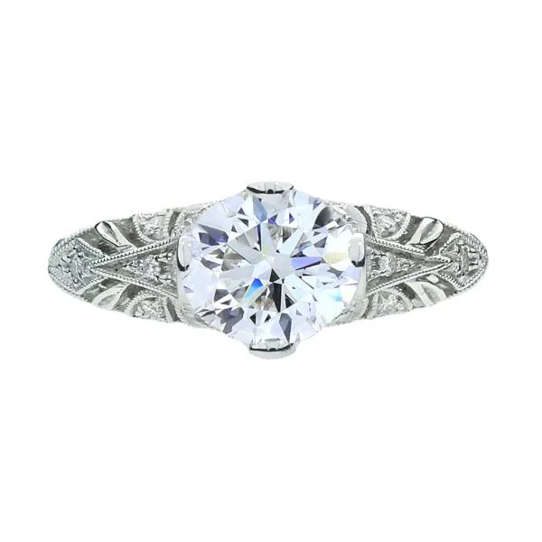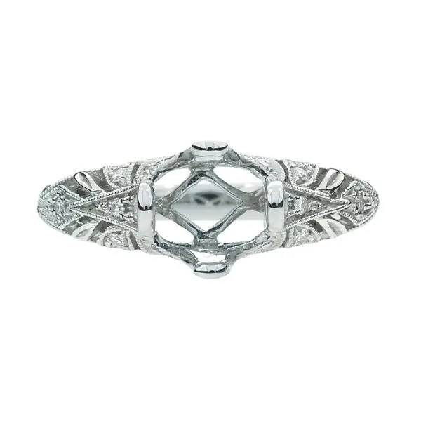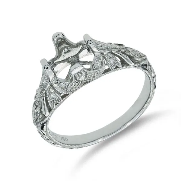 New 18K White Gold Hand Engraved Natural Diamond Engagement Semi Mount Ring Image 2 Purple Creek Holly Springs, NC
