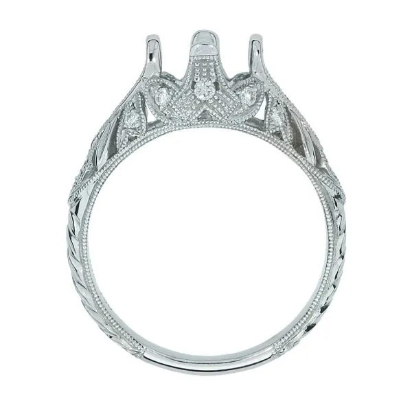 New 18K White Gold Hand Engraved Natural Diamond Engagement Semi Mount Ring Image 3 Purple Creek Holly Springs, NC