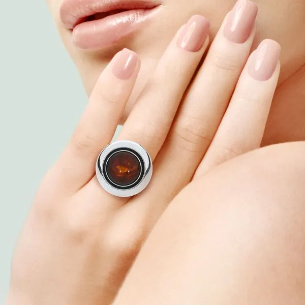 Niels Erik From 1950's Vintage Denmark Amber Sterling Silver Statement Ring Image 2 Purple Creek Holly Springs, NC