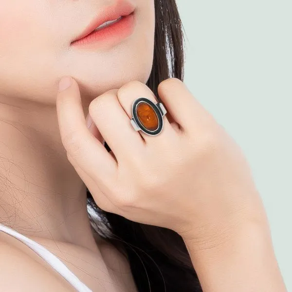 Niels Erik From 1950's Vintage Denmark Oval Amber Sterling Silver Ring