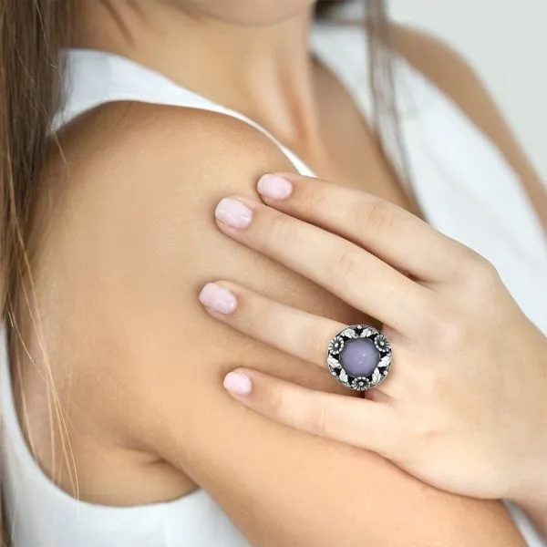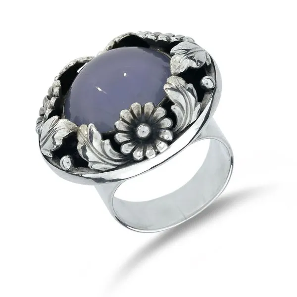 Niels Erik From Vintage Denmark Modernist Sterling Chalcedony Floral Halo Ring Purple Creek Holly Springs, NC