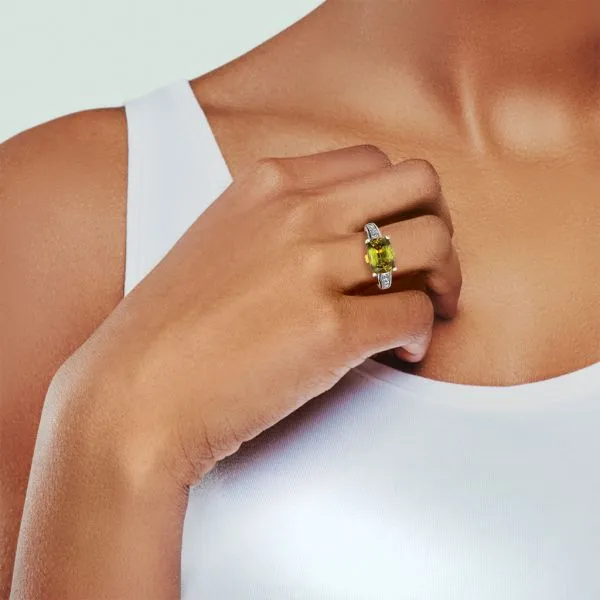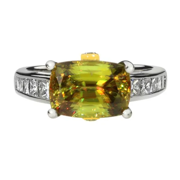 Platinum and 18K Yellow Gold 4.29ct Sphene and Natural Diamond Euro Shank Ring Image 4 Purple Creek Holly Springs, NC