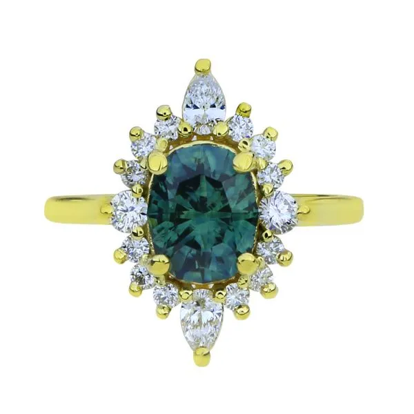 Purple Creek Custom 1.81ct Natural Montana Sapphire with Natural Diamond Halo 18K Ring