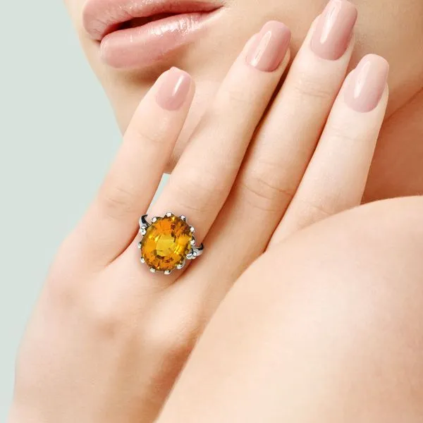 Sterling Silver 10.68ct Fancy Oval Citrine Ring
