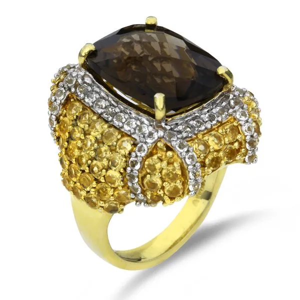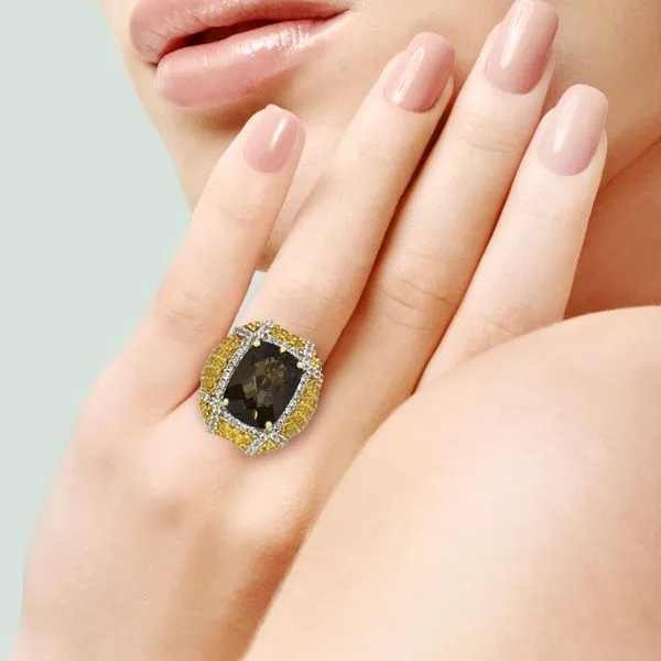 Sterling Silver 12.89ctw Smoky Quartz, Citrine & Topaz Statement Ring