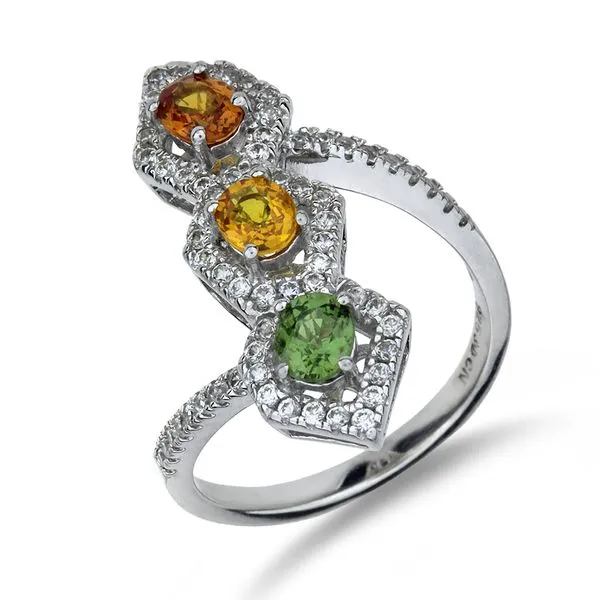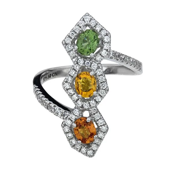 Sterling Silver 1.70ctw Multi Colored Sapphire & White Zircon Bypass Ring